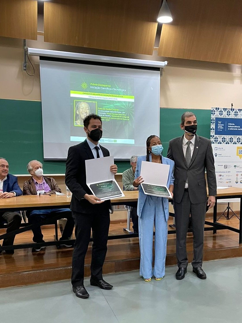 19th CNPq Award for Outstanding Scientific and Technological Initiation, Human and Social Sciences, Letters and Arts – with my mentee Lara de Godoi Soares (middle) and the chancellor of the Federal University of Viçosa, prof. Demetrius David da Silva (right), Brasília, 2022.